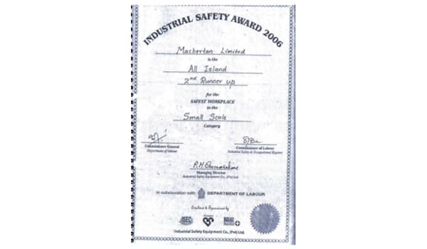 INDUSTRIAL SAFETY AWARDS 2006- 2ND RUNNER UP ALL ISLAND
